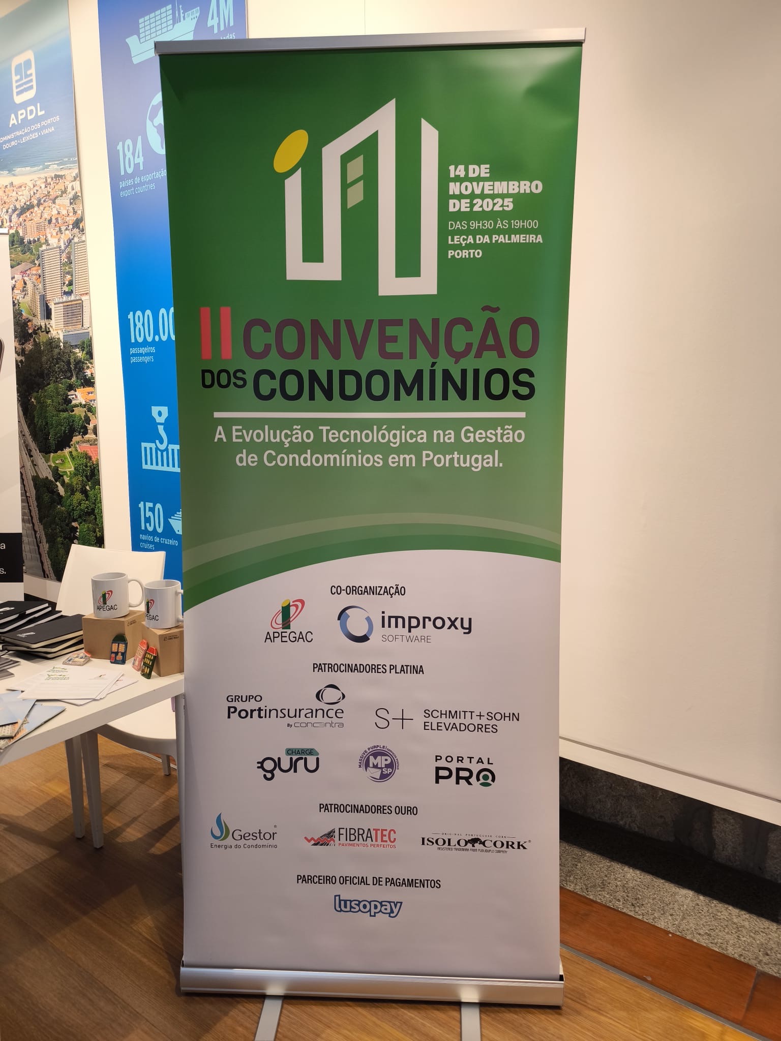 No dia 14 de novembro de 2025, decorreu no Auditório Infante D. Henrique, em Leça da Palmeira (Porto), a II Convenção dos Condomínios, organizada pela APEGAC em parceria com a Improxy, com o tema “Condomínios 2.0 – A Evolução Tecnológica na Gestão de Condomínios em Portugal”.
